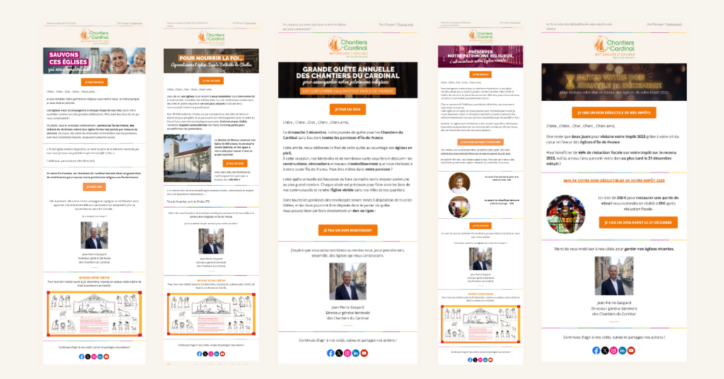 • Séquence d’emailings segmentés selon différents profils pour porter un discours personnalisé selon les publics adressés (sympathisants, donateurs actifs, distants…)