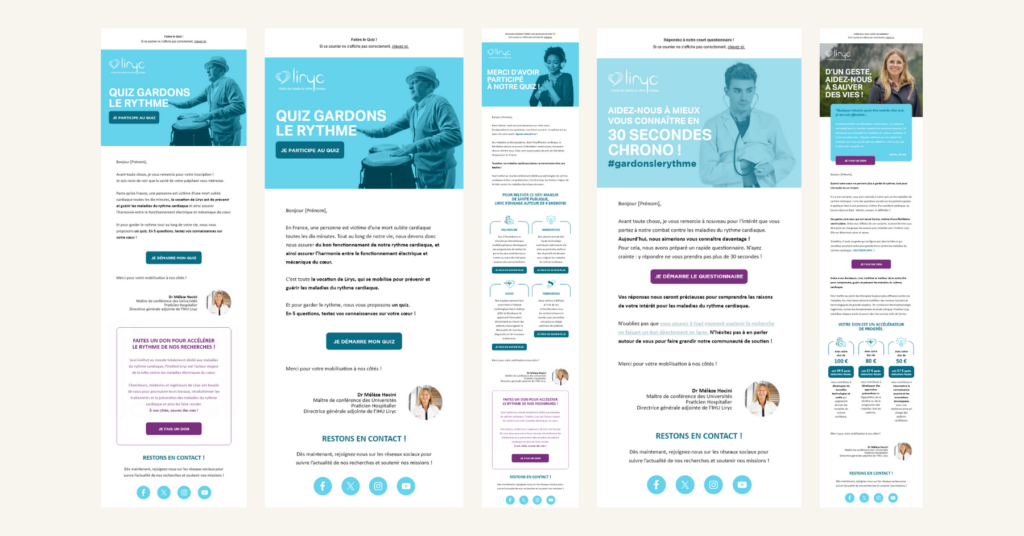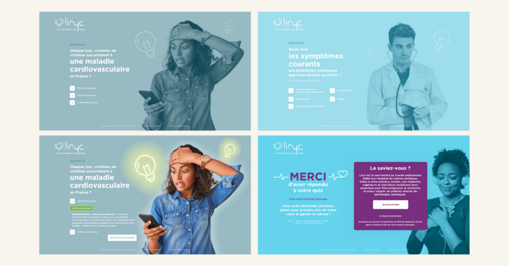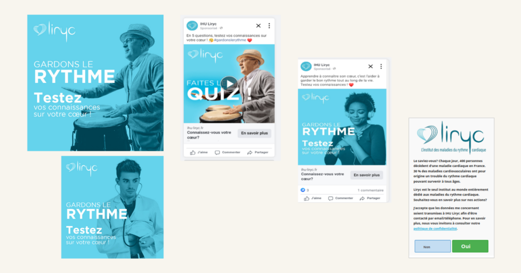 Dans le cadre de son accompagnement annuel et pour sa première campagne d’acquisition de sympathisants, l’Institut Liryc et mind me décident de concevoir et déployer un dispositif à la fois pédagogique et engageant, pensé pour sensibiliser aux maladies du rythme cardiaque et recruter des contacts à valeur.